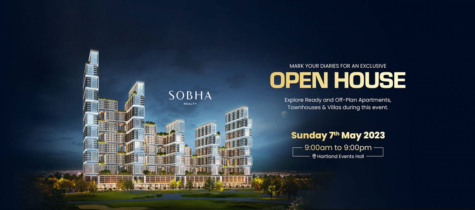 Join us for Sobha’s exclusive Open House Event. Explore ready and off-plan apartments, townhouses, and villas during the event. Meet us on 7th May 2023 from 9:00 AM to 9:00 PM, for an exclusive event at Hartland Events Hall.