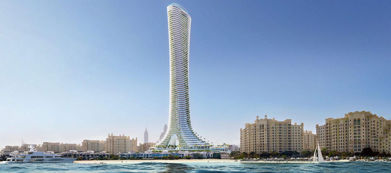 This 71-storey tower redefines the skyline of Palm Jumeirah with its 300-metre height. The tower’s wraparound balconies enable residents to take advantage of 180° to 360° views of Dubai and the Arabian Sea.