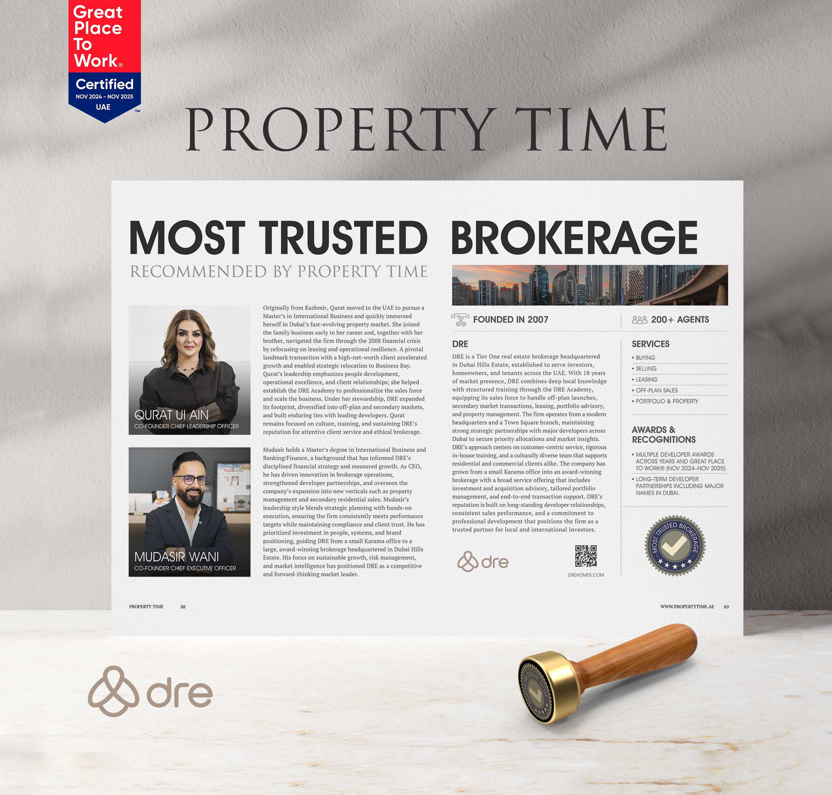 DRE Homes Real Estate Broker is a company registered in Dubai, United Arab Emirates (License No. 599208), We are regulated by the Real Estate Regulatory Agency under office number 652.