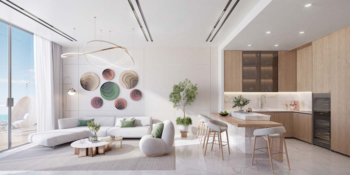 These apartments and penthouses on Al Marjan Island are thoughtfully designed, where fashion and architecture converge seamlessly. Every interior detail has been carefully considered, bringing together refined textures, soft colour palettes, and clean lines to craft a serene yet sophisticated atmosphere. Thoughtful layouts ensure privacy, fluid movement, and unobstructed connections to nature. High-speed elevators, terraced levels, and landscaped courtyards between the wings enhance both openness and intimacy, offering residents a sanctuary of green spaces and calm retreats.