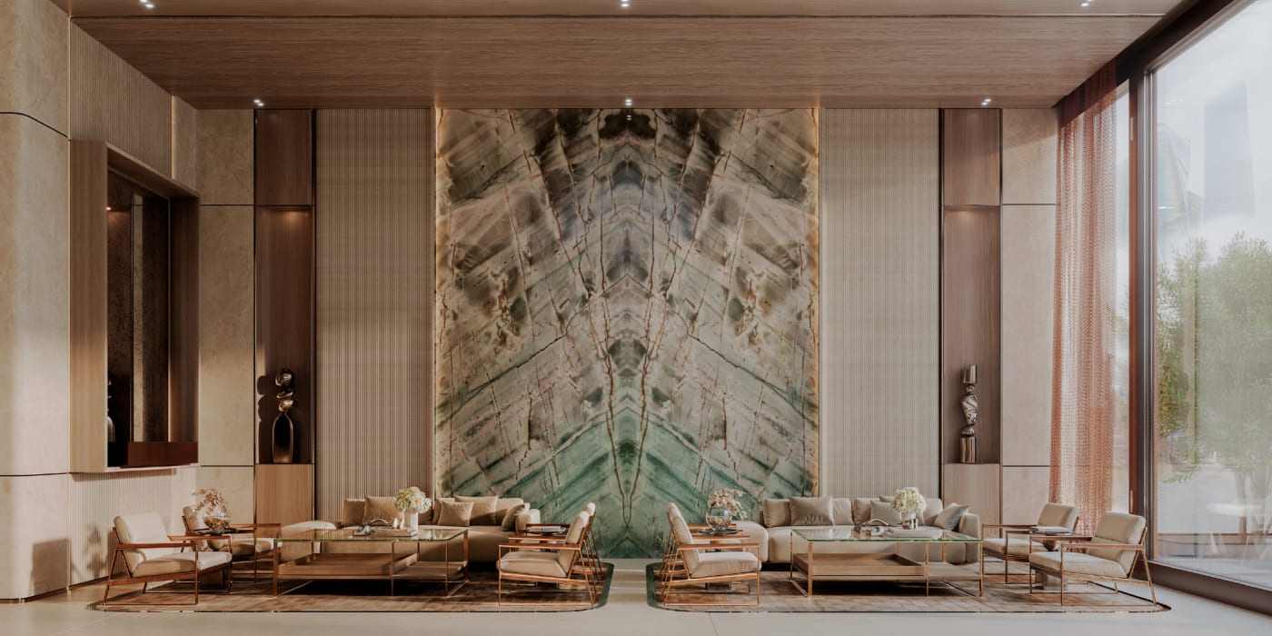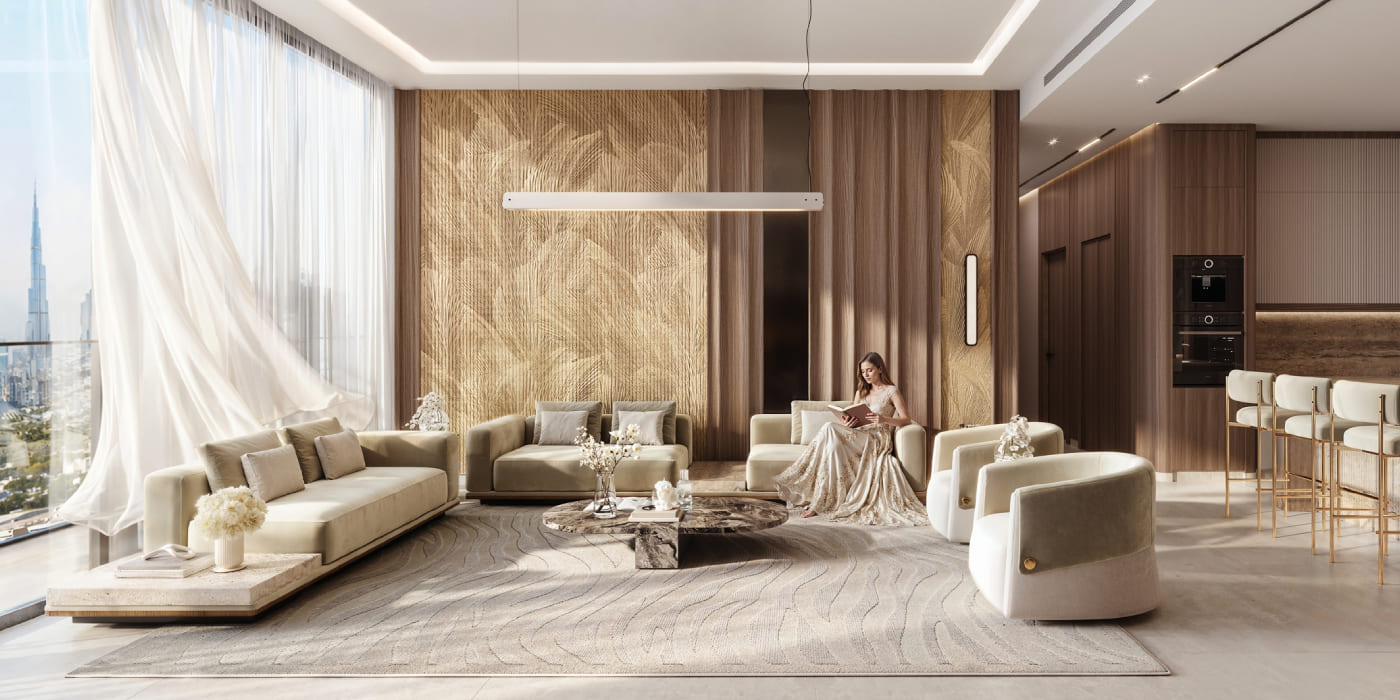 Interiors at Luxuria are thoughtfully crafted to reflect tranquility and understated luxury. A minimalist design approach, complemented by a soft, neutral colour palette and carefully selected materials, creates living spaces that feel both elegant and calming. Each residence is engineered to maximise natural light and offer unobstructed views, ensuring a sense of openness and comfort. The material selection echoes the composed exterior, delivering tactile depth and a refined residential atmosphere throughout.