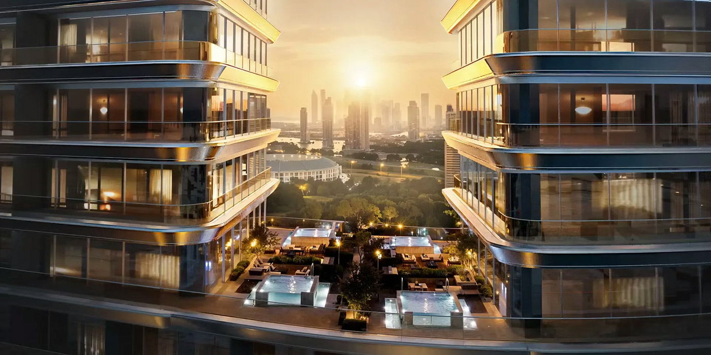 Rising elegantly across 40 residential floors, the tower is among the tallest in the district, redefining the skyline with its bold architectural presence. Expansive terraces and thoughtfully positioned layouts maximise natural light while capturing sweeping views of Dubai’s cityscape. These chic apartments in Dubai Motor City are designed for modern lifestyles; the development blends visual appeal with everyday functionality. The project reflects a strong commitment to design innovation and structural precision. The tower’s composition—featuring two basement levels, a ground floor, six podium levels, 40 residential floors, two mechanical floors, and a rooftop—ensures seamless integration of residential, retail, and commercial components.
