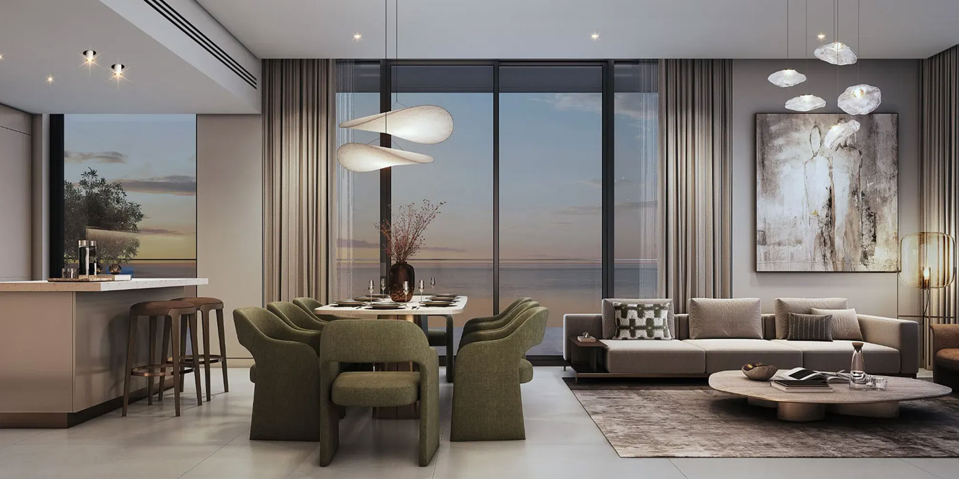 The architecture showcases fluid lines, gently curved façades, and expansive terraces. Layered horizontal bands and floor-to-ceiling glass create a light, rhythmic silhouette that perfectly complements its marinafront setting. These apartments in Siniya Island, designed to embrace its natural surroundings, the residences maximise open sea views, marina vistas, and lush greenery through expansive windows and thoughtfully planned layouts. Bright, open interiors invite natural light throughout the day, creating seamless indoor-outdoor living experiences. Every detail reflects Sobha’s commitment to craftsmanship, blending contemporary design with resort-style elegance for a home that feels both luxurious and personal.