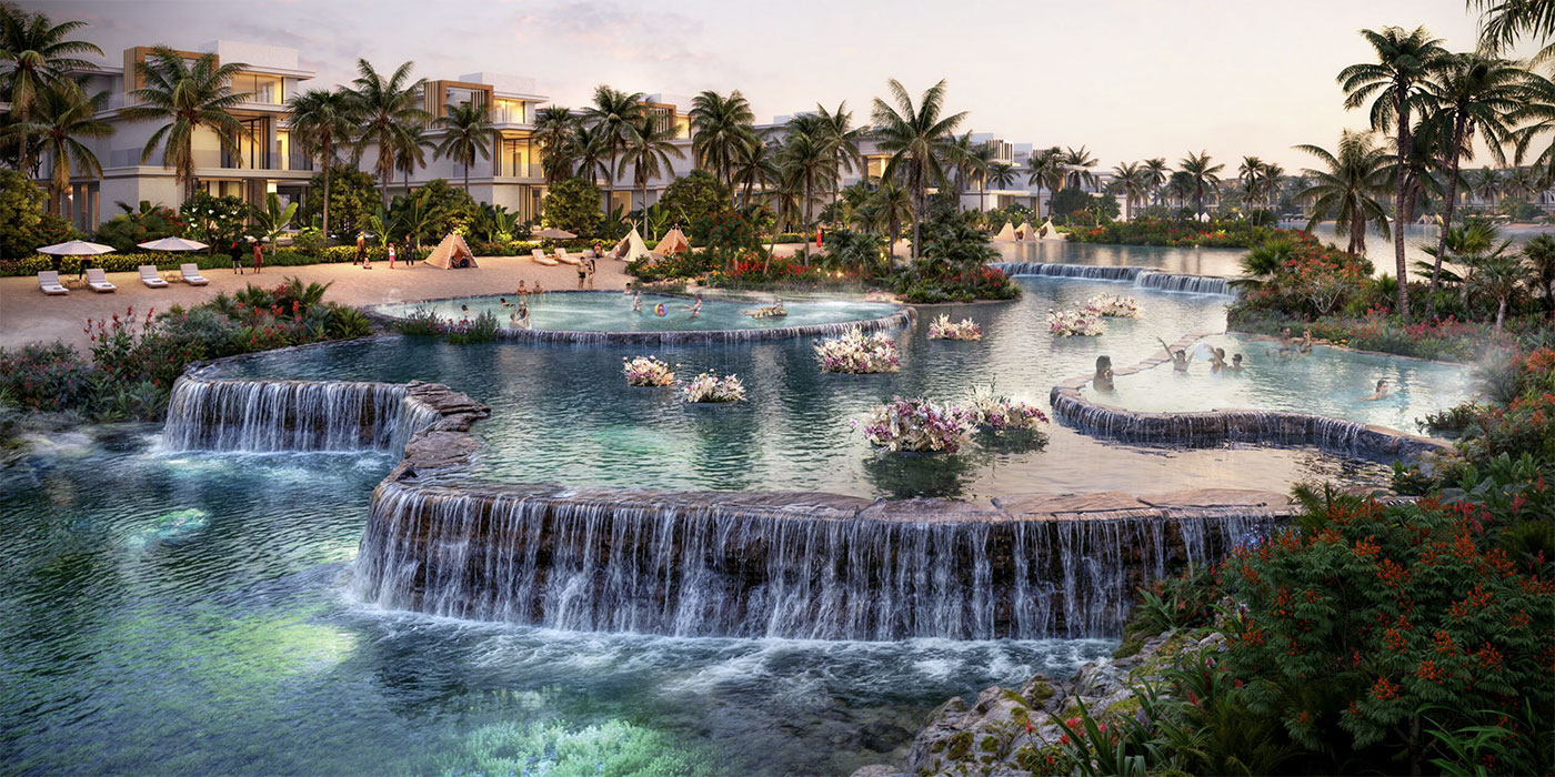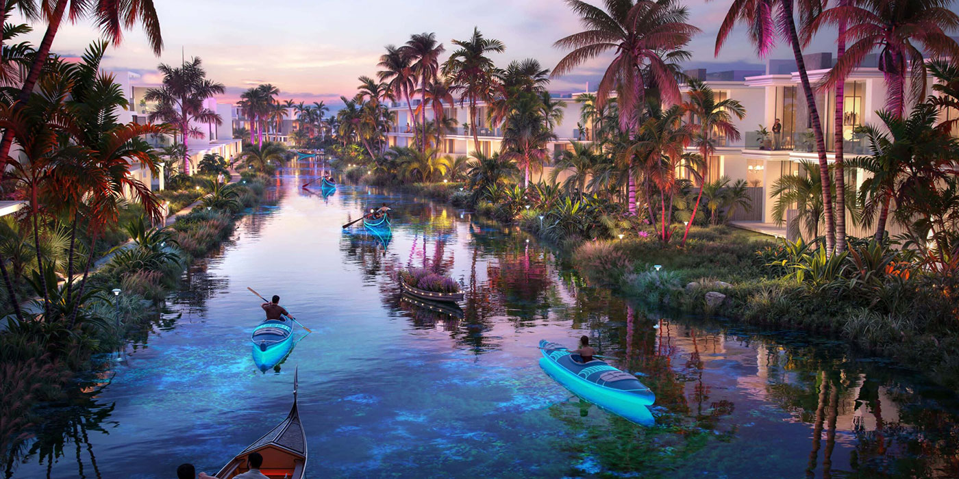 Damac Islands is a new waterfront community developed by Damac Properties in Dubailand, offering 4 and 5-bedroom townhouses, as well as spacious 5, 6, and 7-bedroom villas. This community features an array of upscale townhouses and exclusive villas, each designed to provide an unparalleled living experience. With modern architecture and innovative designs, every home in this community exudes elegance and luxury.