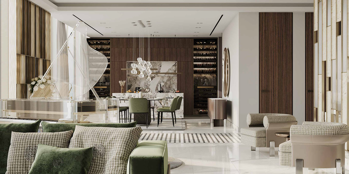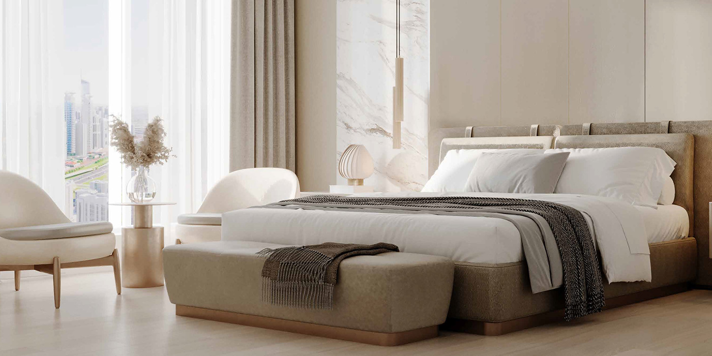 The interiors of Franck Muller Aeternitas Tower Living residences boast luxury and a cosy atmosphere, achieved through carefully selected top-notch materials and finishes. Upon entering the world's tallest branded residential tower, one experiences its extraordinary essence. Every aspect of the tower exudes rarity and class with its intricate details and utmost precision.