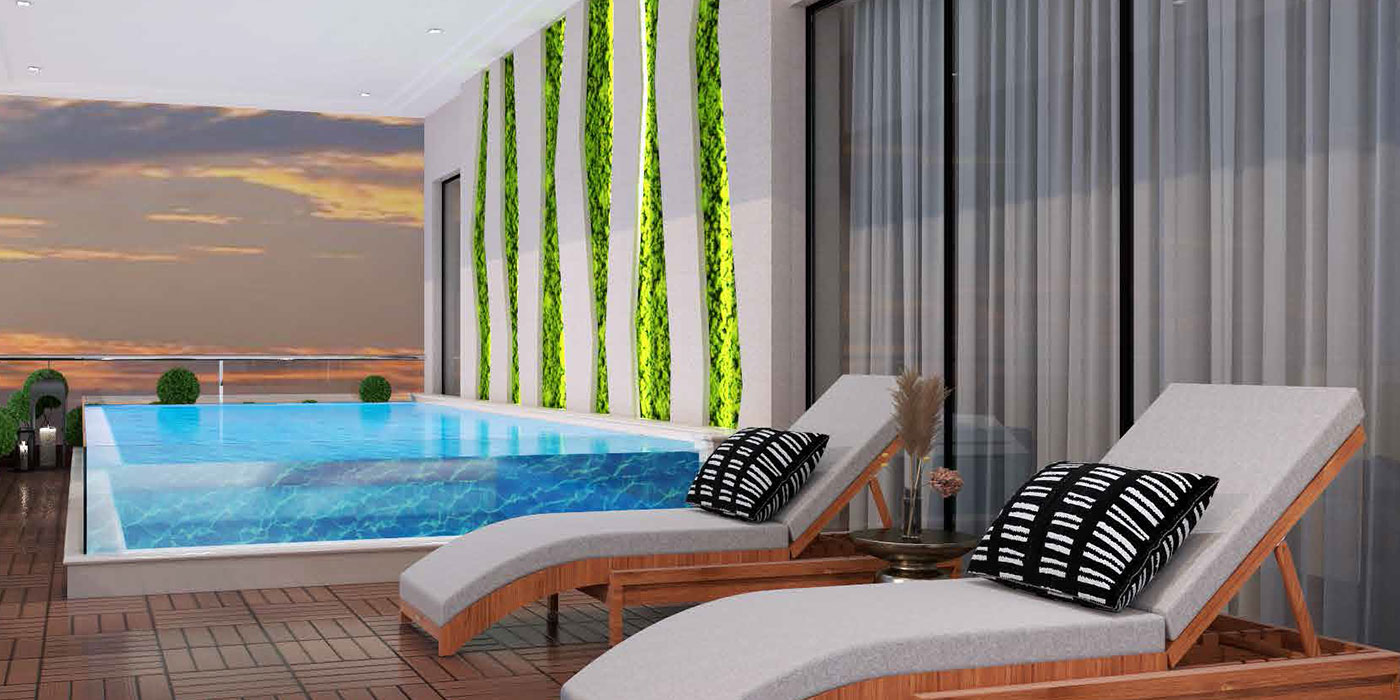 Residents will have exclusive access to premium amenities such as a cutting-edge gym, an anti-current swimming pool, lush green spaces, and an outdoor sky lounge on the 13th level.