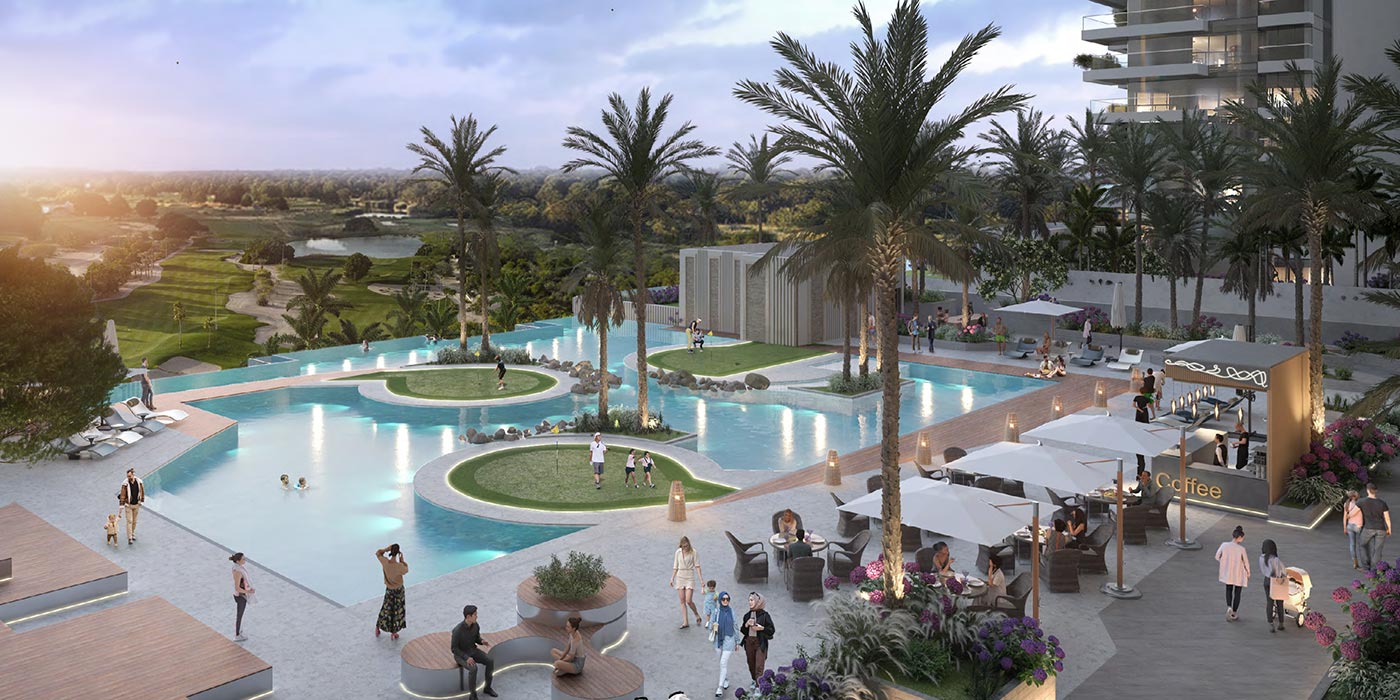 Located in Damac Hills, Golf Greens is a prestigious project by Damac. The development provides residents with an exceptional living experience and a prime location. Each day begins with sweeping views of the streets of Damac Hills, where breathtaking vistas become beautiful brushstrokes on nature’s canvas. Trump International Golf Club, Dubai is where the sights and sounds of nature combined with a golfer’s swing inspire a soulful journey of leisure. Put on your bathing suit, grab your goggles, and relax in the always-open wave pool at Malibu Bay, Damac Hills. Take time to dance, dive and jump in the ocean waves, or just relax in the shallow waters with a beachside atmosphere, trendy food and drink shops, and much more.