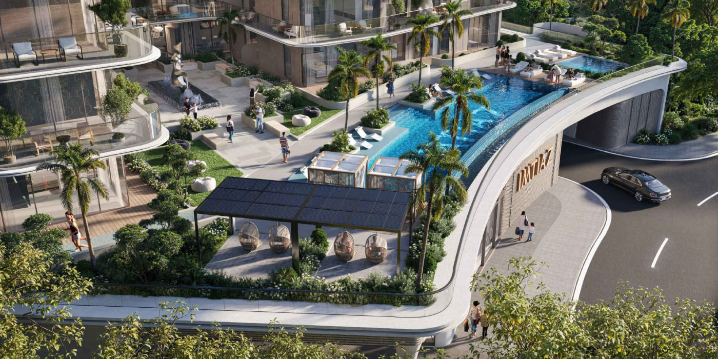 Lifestyle amenities are seamlessly woven into the fabric of the development, enhancing daily routines rather than interrupting them. Residents can enjoy adult and children’s swimming pools, wet decks with sun loungers, cabanas, and floating decks, alongside wellness-focused spaces such as a jogging track, yoga deck, and indoor gym. Landscaped courtyards, water feature gardens, open lawns, and shaded seating areas provide peaceful outdoor settings.