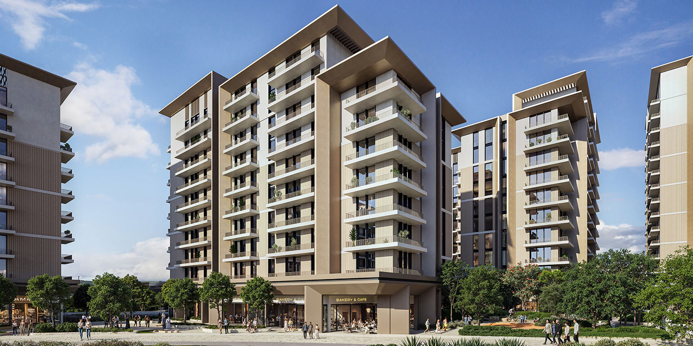The architectural design of Mahra draws from the natural undulations of Expo Valley, translating organic movement into a contemporary living environment. Podiums, terraces, and courtyards appear to grow naturally from the landscape, blurring the boundaries between indoor and outdoor spaces. Warm, earthy tones inspired by sand and stone, combined with expansive glazing, invite natural light into the homes, creating bright, serene interiors. This thoughtful balance of material, light, and form results in a timeless design rooted in clarity and purpose rather than fleeting trends.