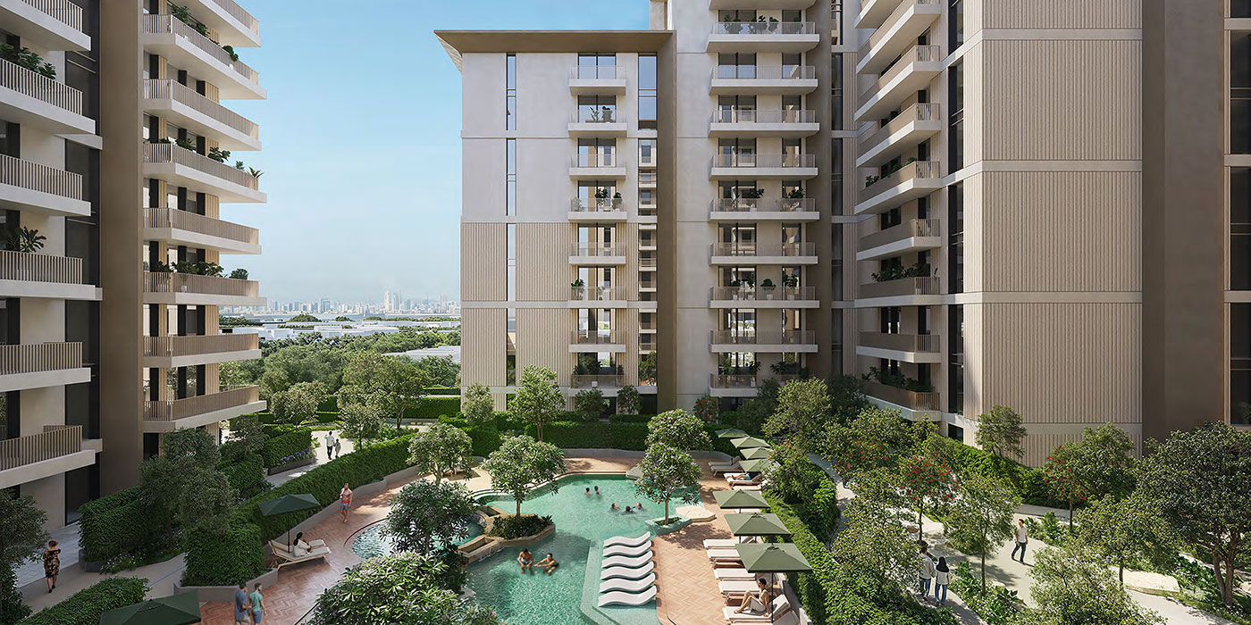 Sustainability is a core principle of Mahra, aligning with Expo City Dubai’s broader vision for environmentally responsible urban living. Energy-efficient planning, thoughtful orientation, shaded areas, and integrated landscaping work together to ensure year-round comfort with minimal environmental impact. Complementing this are wellness-focused amenities, including swimming pools, fitness and yoga spaces, gardens, community plazas, cafés, and multipurpose halls—carefully woven into the landscape to create a balanced lifestyle where leisure, health, and everyday living coexist effortlessly.