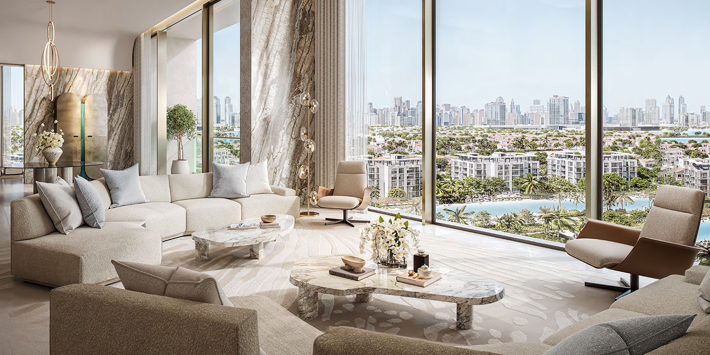 These residences in District One, are designed to foster a harmonious flow between the interior and exterior spaces. Expansive floor-to-ceiling windows invite abundant sunlight, enhancing the feeling of airiness. The 1-bedroom apartments feature open layouts, walk-in closets, and private balconies, while the 2-bedroom homes include spacious living areas and some with additional maid’s rooms. The 3-bedroom residences boast generous terraces that elevate the indoor-outdoor experience. The penthouse is the epitome of luxury, designed for those who love to host. The lower level features spacious living and dining areas, a show kitchen, a guest bedroom, and a service zone, while the upper level is a private retreat with a master suite, secondary bedrooms, a family lounge, and a stunning private pool.