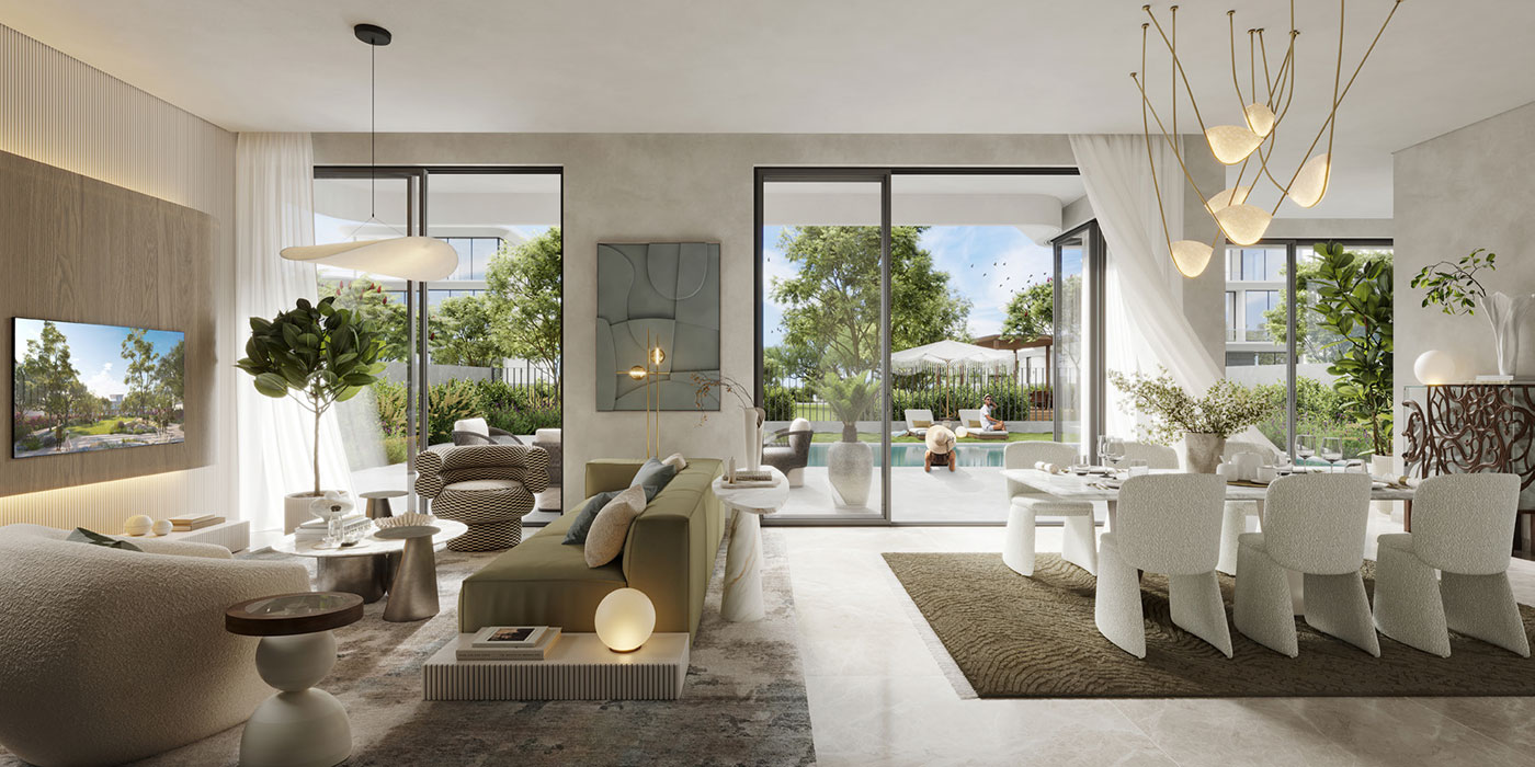 These villas in Dubai Hills Estate stand as a true testament to contemporary architectural finesse, with expansive layouts, carefully curated interiors, and fully furnished designs that exude calm, elegance, and modern comfort. Clean lines, minimalist forms, and panoramic glazing define the architectural language, while rooftop garden terraces and large balconies create seamless transitions between indoors and out.