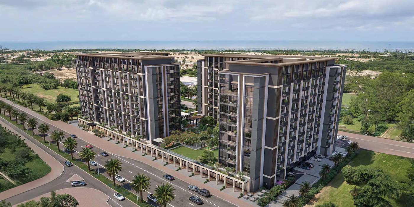 Thoughtfully designed, the towers cater to the modern urban lifestyle, encouraging a way of living that exceeds expectations. The exterior features earthy, neutral dark tones enhanced with warm brown accents, while spacious balconies and expansive windows create a seamless transition between private interiors and the landscaped surroundings. Inside, every corner exudes sophistication, with meticulous detailing and refined finishes. Soft, luminous colour palettes, open-plan layouts, and elegantly furnished spaces, paired with floor-to-ceiling windows and private balconies, fill each home with natural light and breathtaking views, ensuring a serene yet grand living experience.